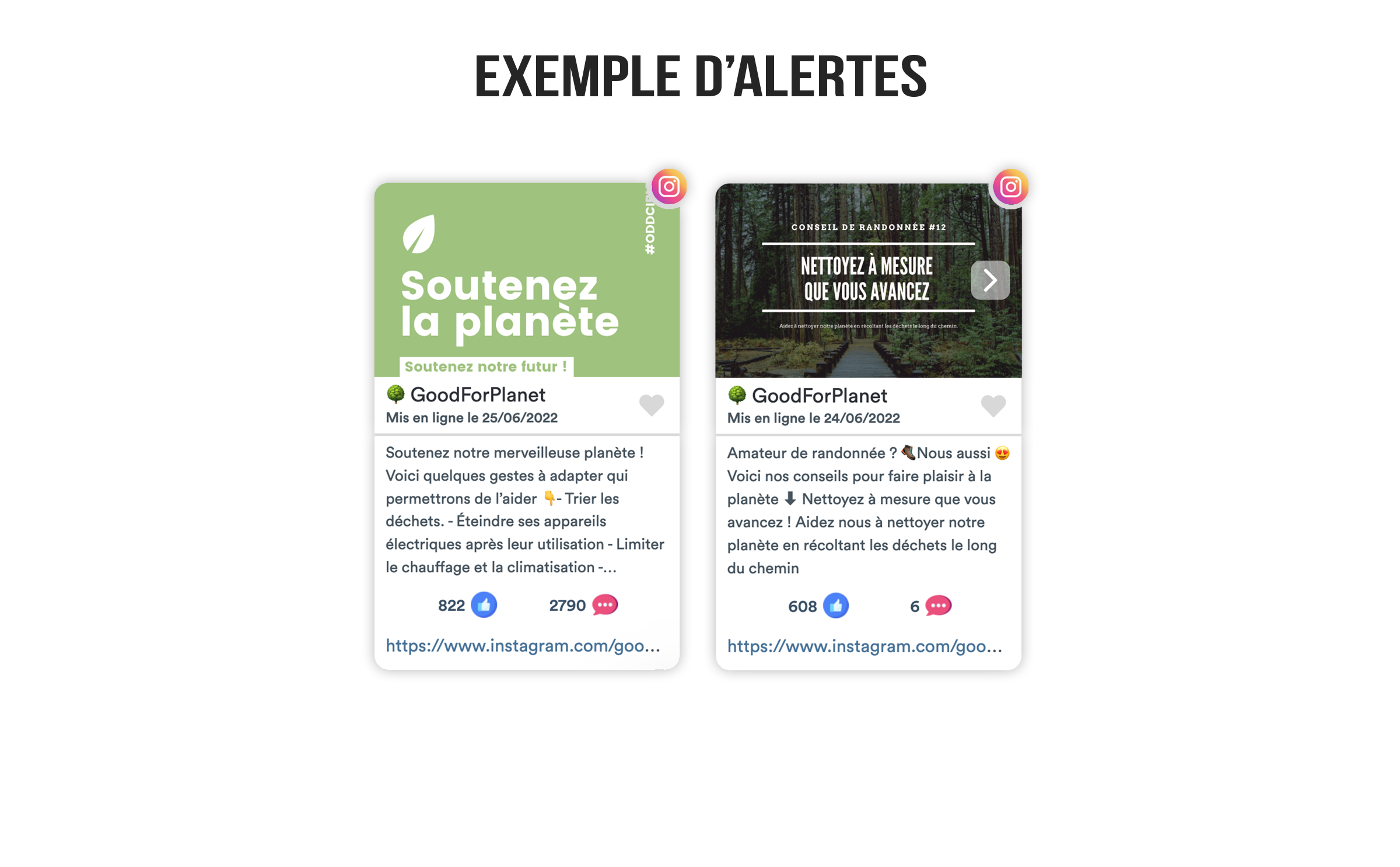 Qu’il s’agisse d’une image, d’une vidéo ou d’un carrousel, GetAlert vous le fera savoir. Grâce à l’indicateur de tendance vous pourrez facilement trouver un contenu qui a fonctionné.